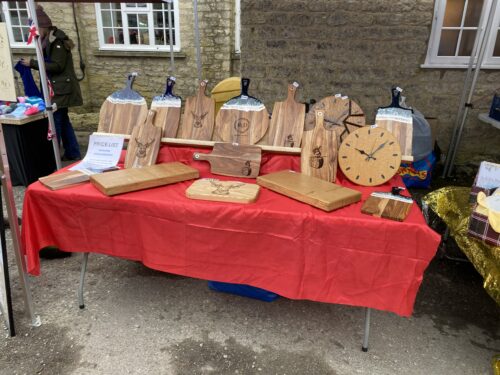 Handmade wooden gifts such as chopping boards, soft toys etc.